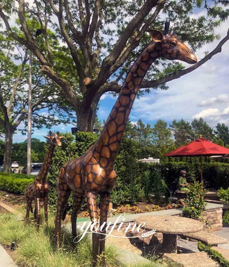 You must have been attracted by its beautiful appearance and color at a glance. The layered yellow makes the giraffe sculpture as dynamic as a real giraffe. This effect is the patina we get with chemical coloring. It could achieve better than the real effect. Moreover, the transition between various colors is natural. It also stays for a long time without fading. This is the most attractive point of it.
