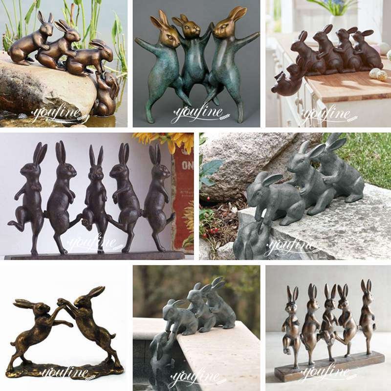 If you are an affectionate lover of rabbit, bunny, YouFine gallery has a series of bronze garden rabbit sculptures for you to choose from. They have different shapes, with different cute and playful looks. There are fighting rabbits, dancing rabbits, playing rabbits, and running rabbits. Some of them are one, and some are several. If you prefer any of designs, please contact us without hesitation! The following shows you the different types of copper rabbits we have made, please feel free to contact us!
